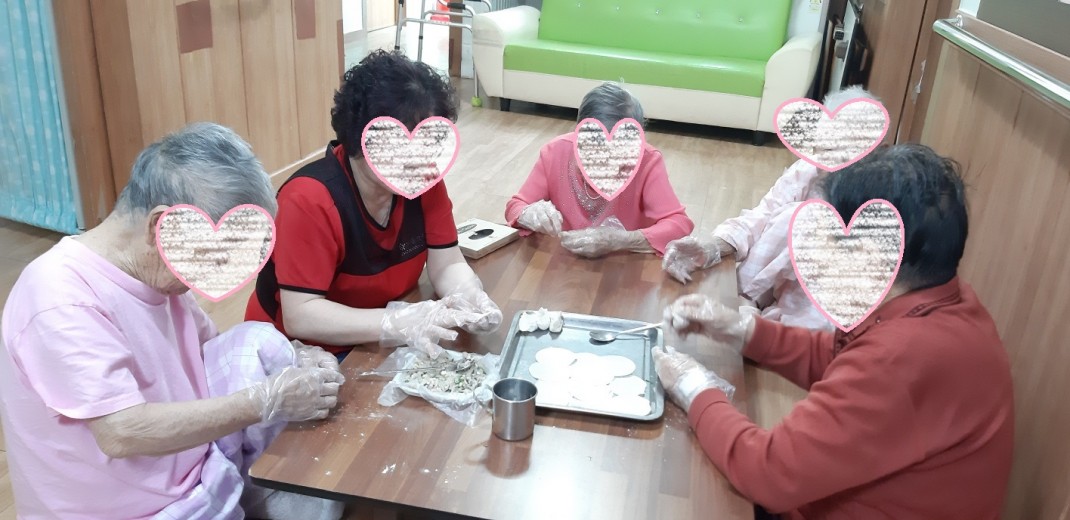매월 요리활동으로 어르신들과 맛있는 요리 프로그램을 진행하고 있습니다. 11월에는 요리 활동으로 만두 빚기 활동을 진행해 보았습니다.